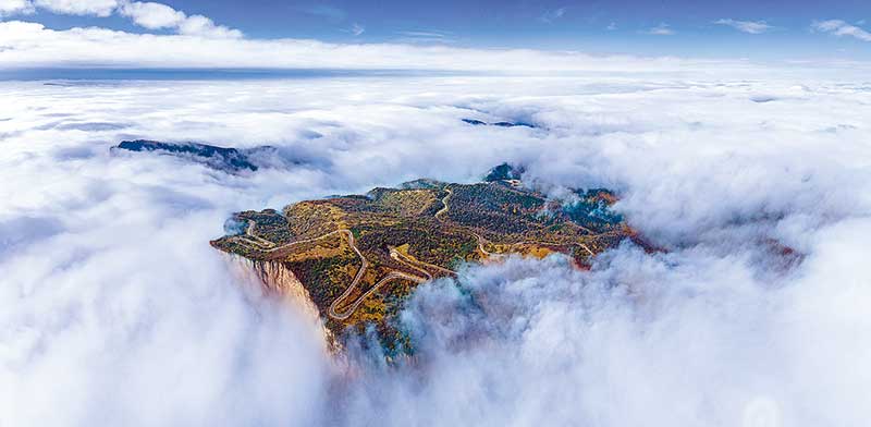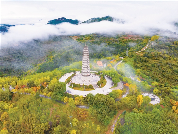 左權縣太行龍泉旅游區(qū)磅礴的云海漫過層林盡染的群山