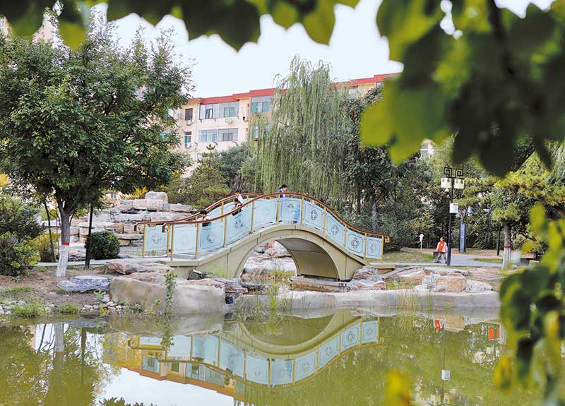 市民在市城區(qū)無暄園口袋公園漫步