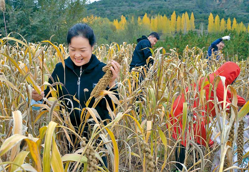 左權縣石匣鄉(xiāng)林河村農民搶收谷子等農作物